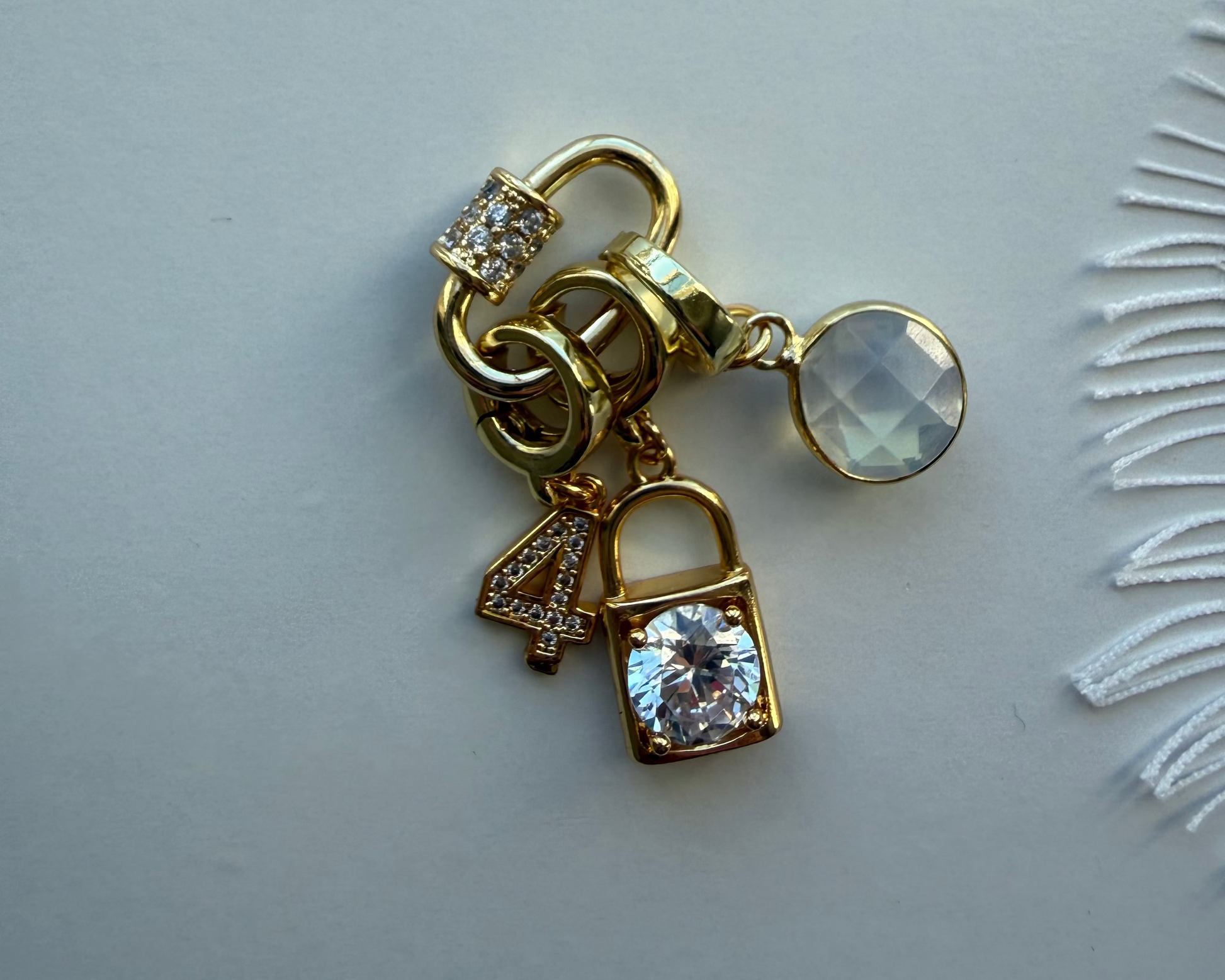 If you like a little extra pizazz, add a sparkly carabiner to your necklace or bracelet! This carabiner will be attached to the FRONT CENTER of your necklace or bracelet (held by a link on each side) and does not replace your lobster or magnetic clasp in the back. It is meant to hold your charms on the front of your piece. Gold-filled.