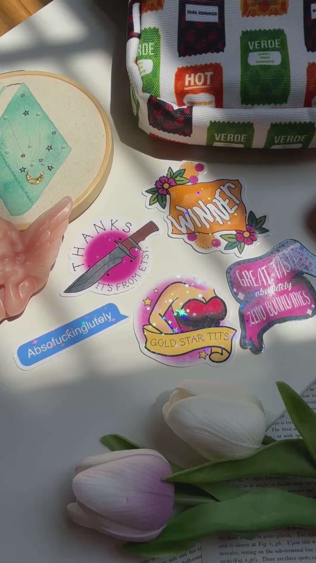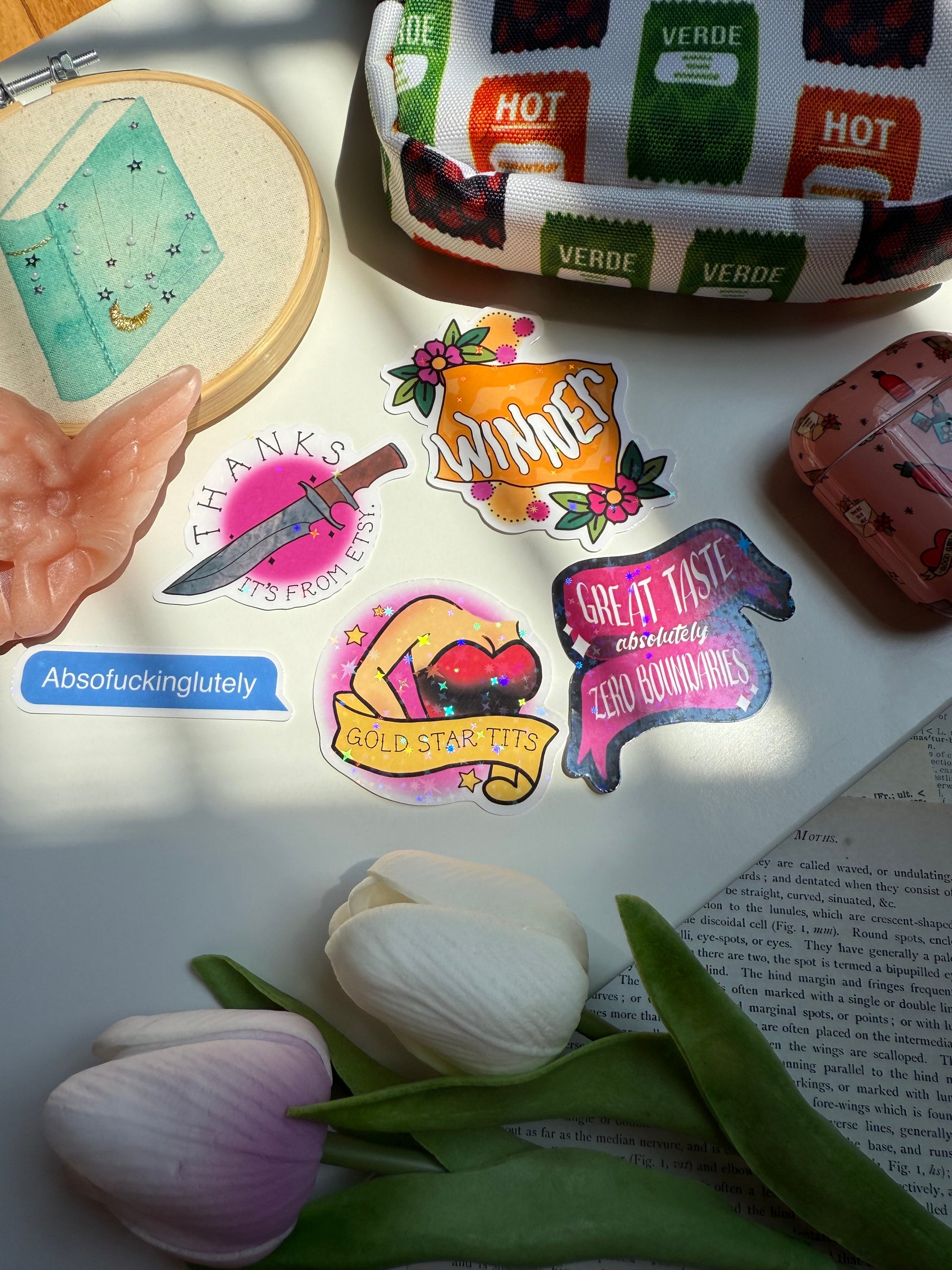 High-quality vinyl stickers are sealed with matte/holographic laminate for extended life. Stickers have excellent adhesion when applied to a clean, flat surface, or can be kept on their backing and put into a clear case for flexible use. Gutsy Little Mama is not responsible for incorrect application and will not refund or replace stickers unless there is a manufacturing defect.
