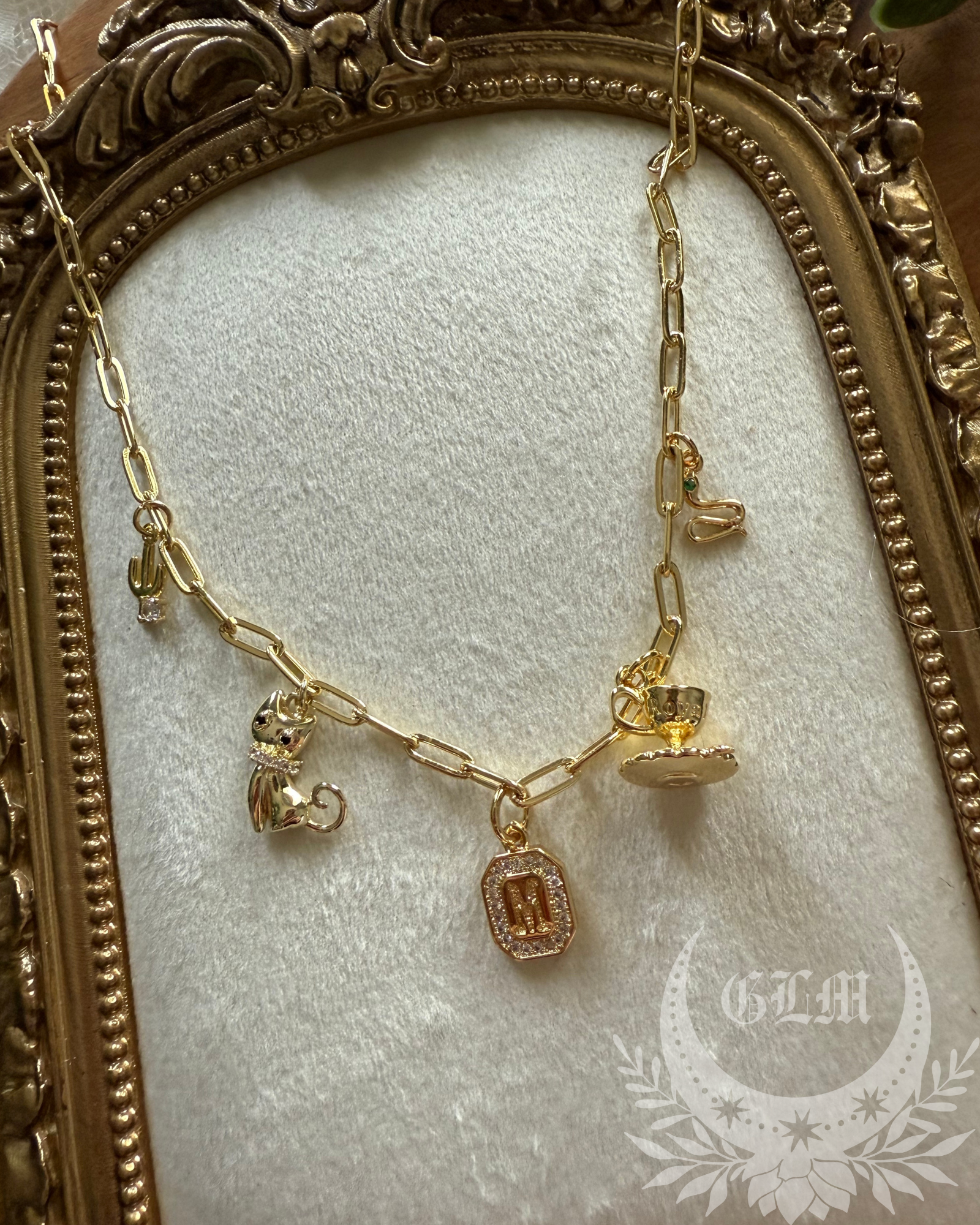 A little collection of FanFic icons - cactus, crookshanks, monogram M, teacup, and serpent.