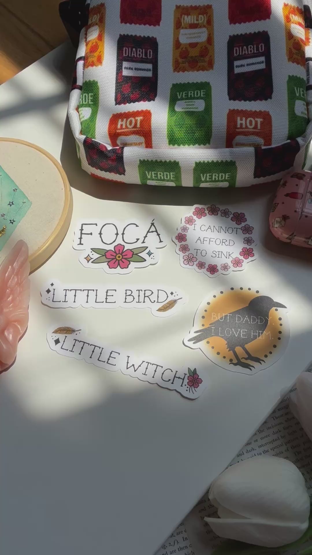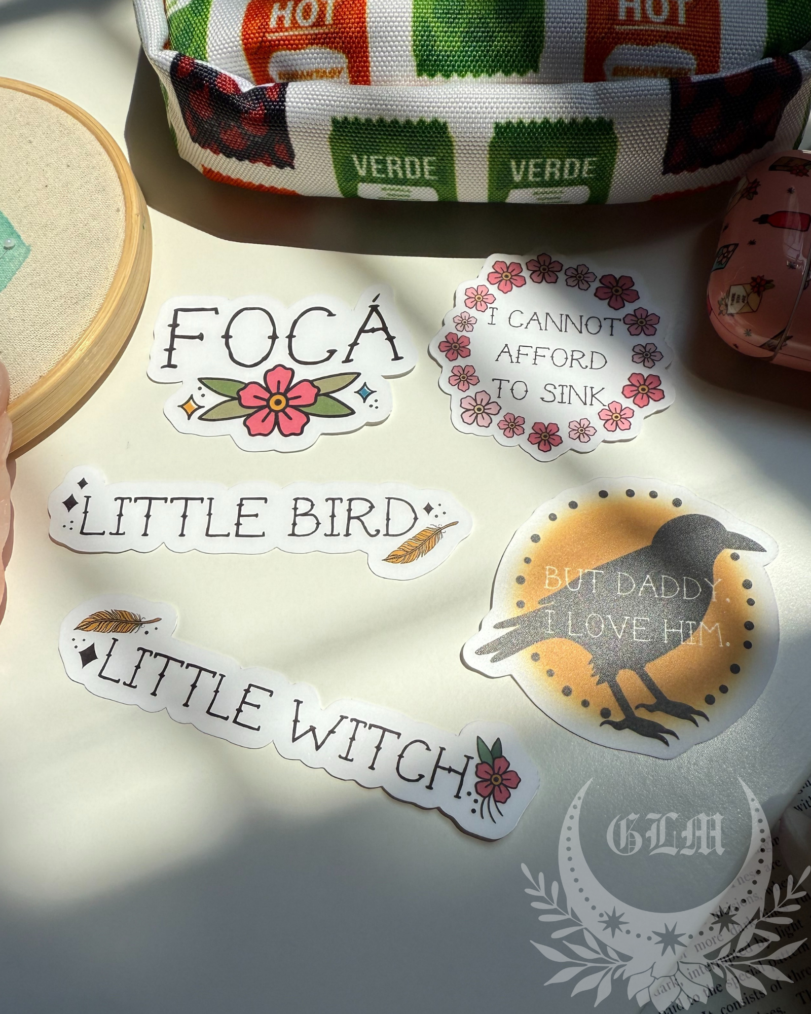 This set is for FIVE (5) stickers: Foca, Little Bird, Little Witch, But Daddy I love Him, and I Cannot Afford to Sink.