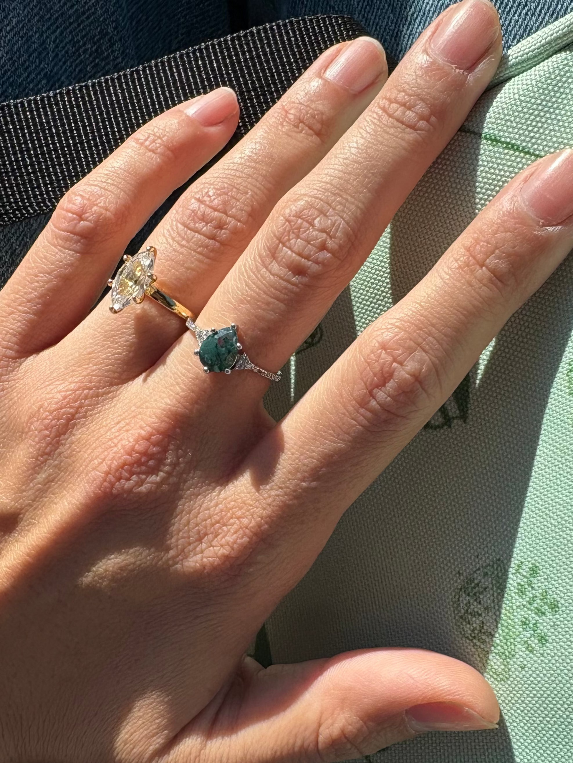 - Gold or Silver-finished s925 Moss Agate Hermione Ring: Represents our girl's love of nature, science, & of course, Draco.